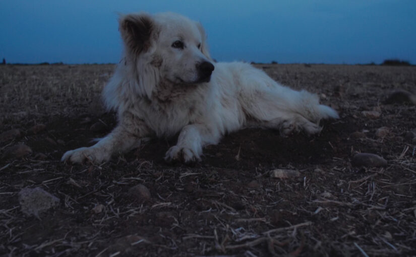 CMB : Mon précédent film a été tourné à l’épaule. J’aime l’aspect physique du cadre en mouvement. J’ai essayé de retrouver cette forme de sensualité à travers le plan fixe, cela passe notamment par des plans assez serrés sur des visages, un corps qui occupe tout l’espace du cadre, des mains, une attention à la lumière. Je voulais aussi que le regard du spectateur ne soit pas guidé, mais qu’il puisse déambuler dans cette Crau, s’arrêter sur des détails. Ce vieux patou qui garde le troupeau par exemple, j’étais devenu assez proche de lui pour qu’il me laisse l’approcher, je savais où il se couchait, j’ai pu poser ma caméra à ses pieds. Je trouvais beau d’observer la plaine à travers ses yeux.