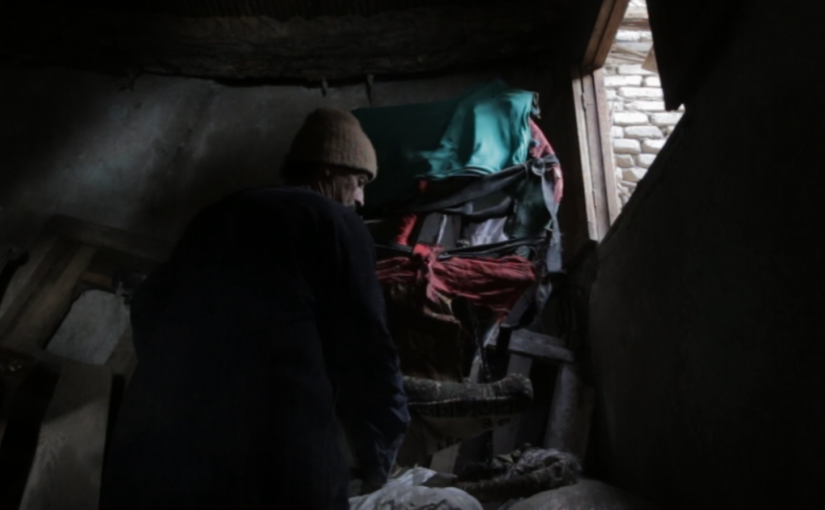 Des cellules drues, à l’électricité statique, aux traces d’RGB, qui servent d’enceinte, de mausolée, pour les portraits monochromes des défunts. Portraits affichés, collés aux murs ou bien posés. Ils reposent, mais sont redressés, ces visages qui semblent appeler de loin leur propre voix, confinée sous plusieurs couches de laines. Et cette hantologie est précise dans le vaporeux, résonne avec la psalmodie des chants, le bourdonnement et l’inhalation de la chicha, le bruit d’un rembobinage récurrent, le martèlement du bois, partageant tous une source d’origine retirée, absente à l’image. Ces absences confèrent aux corps présents la même densité que les voiliers miniatures flottants, entassés et emmurés, voués à l’immensité en suspens. Brutalement sans bruits, mais accompagnés de sons, multipliés, répétés, ils ravivent ; suggérant gracieusement la pratique du dhikr, l’invocation rythmique. Alors, une fréquence ésotérique le long des plans insuffle un mirement mémorial, élégiaque, se rapprochant du maniement d’un savoir complice. Celui, sévère, et acéré, de reconnaître aux animaux leur rôle d’assesseur auprès de Dieu, qui livrent les hommes occultés et enlainés, essence qui leur était déjà avouée dans Ozr el wezzah (2023). Emmitouflé, on ne peut alors que méditer avec prudence et sculpter, entouré de sa propre désertion, et des bêtes qui l’annonceront.