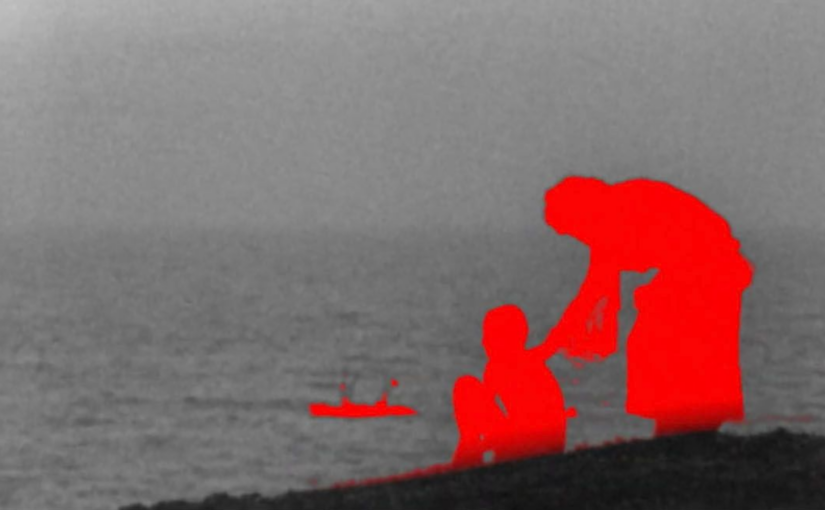 Sous le flux aqueux, une cascade de fleurs s’étend dans le musée des jours, des rouges détonnent, une persistance. Archivistiques, les enregistrements, films, photos, et leurs apparitions mentales alors actualisées sont contaminés par l’urgence du présent. Un fluide rouge s’immisce dans les grains des pixels, tâches comme barreaux, courcircuite les vagues et l’écume, empruntant une esthétique du datamoshing et du glitch, et révélant ainsi la détournabilité des images. Son vif rature les annotations inscrites en hébreux et ravive les corps pour une existence nouvelle du pays des oranges tristes. Une ré-appropriation pour re-visiter ces terres au bord de l’oubli