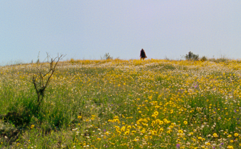 Perdue dans le monde, la caméra de Fazendeiro panote régulièrement. Ses panoramiques, proches des 360 degrés, reviennent et s’éparpillent dans la trame sans autres lignes de mire que l’horizon. De larges espaces, des champs et des herbages, des fleurs et des arbres sur de nombreux ciels, ces mouvements disposent les fresques des paysages ; la mémoire rurale, le sens de ce que l’on appelle communément nature. Tout y fourmille calmement, presque imperceptiblement. Peut-être faut-il parfois de la fiction pour mieux y voir ? La caméra, au cœur des lieux, par ces panoramiques lents et autres travellings tout aussi délicats, au milieu du film, se dirige vers un nouvel espace, une autre chèvre recouverte d’or et de bibelots. L’animal se métamorphose en une jeune femme et c’est tout le cinéma de Pier Paolo Pasolini qui vient palpiter d’onirisme la nouvelle séquence. Les mythes sont libérés, se donnant entièrement à la réalité tangible de tous ces lieux, toutes ces terres, toutes ces histoires dorénavant sacrées. Il y a deux tons, la part naturaliste du monde présent et, dans un même temps, celle illuminée de quelques visions. Les mythes déliés, la vie s’agite.