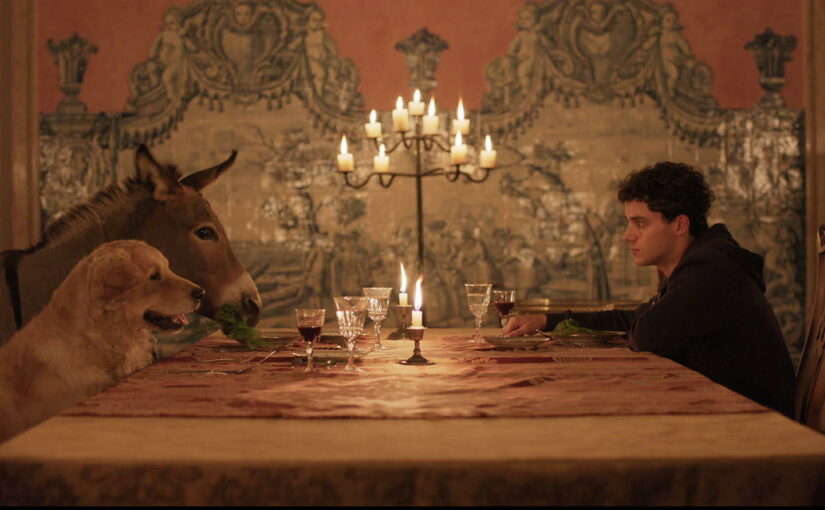 C’est un film sur la parole, sur la puissance du souffle verbal révélant une forme de sacralité. Par la déclamation, l’énergie essentielle véhiculée par le corps du comédien donne une incarnation à l’expression du discours. Ce souffle est fait d’une sobriété saillante au sein d’une mise en scène semi-costumée, de calme et de profondeur — d’une profondeur émanant aussi des regards-caméra qui nous transpercent — ; une poésie tout en équilibre, et mesure, un passage entre un dedans et un dehors, entre le réel et le songe. Dans ce rythme demeure le sens de chaque énoncé ; la maîtrise rythmique se déploie aussi bien scénaristiquement que dans le montage. Un tel jeu entre le silence et la parole, le mouvement et l’immobilité, révèle la patte oxymorique. Tout est contradictions et paradoxes : des mélanges de sublime (Helena, interprétée par Maria Gomes) et de grotesque (l’Ogre, interprété par Diogo Dória), de comique (le balai volant conduit par la sorcière, interprétée par Leonor Silveira), et de tragique (la modernité capitaliste), d’animalité et d’humanité (le scénario étant la transformation des touristes de Lisbonne en animaux, par le sanguinaire et méchant Ogre vorace).