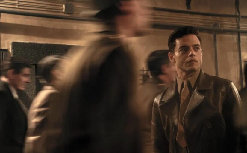 Nous fûmes bien naïfs, car rien ne nous préparait véritablement à ce qui est purement et simplement une grande infamie cinématographique. Une phrase prononcée par une journaliste donne le ton du traitement formaliste qu’adopte le film pour raconter Nuremberg : « d’ici 48h, ce procès sera le plus grand spectacle du monde » (en anglais dans le texte, cela sonnerait presque explicitement comme une référence au Greatest Show on Earth de Cecil B. DeMille). Imaginez donc un film qui se présente comme historique, mais filmé en réalité par l’un des pires fils illégitimes de Spielberg. Les ruines de la ville germanique font office de décor à thème Disneyland, dans lesquels déambule un Rami Malek fringué comme Indiana Jones, veston de cuir marron vintage et lunettes noires. Quand Stanley Kramer filmait ce qu’il restait de la place de Nuremberg en 1961, il en faisait une scène magnifique de cinéma, où les ruines vides faisaient entendre en off les fantômes des nazis victorieux. Quand James Vanderbilt les filme en 2025, elles deviennent un élément de scénario, une note de bas de page, pour une pauvre séquence de dialogue où l’on somme Kelley d’avancer plus vite dans le diagnostic de Göring. Un décor historique au service d’un film d’espionnage médiocre.