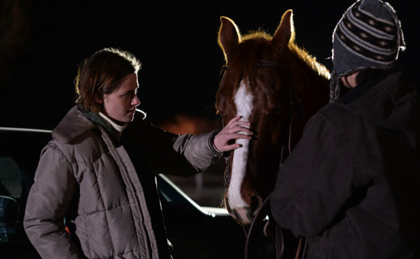 C’est une image découverte un peu plus tard qui m’a réellement piqué, m’aidant à appréhender la beauté de cette filmographie. Dans le dernier segment de Certaines femmes, au climax du jeu de séduction mené par une exploitante de ranch sur une professeure de droit, Jamie (Lily Gladstone) surgit à cheval devant la salle de classe pour emmener Beth (Kristen Stewart) dîner. C’est mon image préférée de tout le cinéma de Kelly Reichardt, et on peut tout comprendre à travers elle : se révèle que c’est une immense scénariste (ce geste seul contenant à la fois l’explosion romantique et la déception amoureuse), une créatrice visuelle hors pair (qui n’a pas été marqué au fer par Lily Gladstone traversant la nuit à cheval, Kristen Stewart collée à son dos ?), et s’y lit en même temps la précision politique phénoménale de cette cinéaste (les écarts sociologiques et d’appréhension du monde entre les deux femmes, mis en lumière par bientôt deux heures de film pourtant consacrées à d’autres, apparaissent avec une criante injustice).