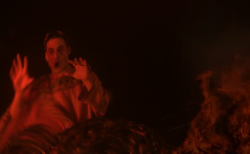 Le premier des fils, c’est Néron : pendant l’incendie de Rome en l’an 64, il récite ses sermons au milieu de flammes dont les reflets rougeâtres nous suivront tout au long du film. Le second, c’est Dante. Ses écrits toscans, qui brilleront à travers les âges, sont issus de ses rêves, incarnés dans la matière même du film par des fleurs qui parlent et se meuvent librement, tandis que la forêt interminable voit aller et venir des femmes mystérieuses insaisissables. Un monde tantôt apaisant tantôt dédaléen, qui vire progressivement au cauchemar lorsqu’arrive le siècle de Sade, troisième fils. Ici, ce n’est pas qu’un imaginaire folklorique associé au substantif tiré de son nom que le film convoque chez le spectateur mais bien des scènes de sexualité crue qui choquent – le réalisateur qualifiera ces scènes de « normales dans le cinéma underground des années 1970 » à l’issue de la projection. Les actes sexuels flirtent avec la torture, montrent des rapports de pouvoir et de domination réunis dans une scène de fellation qui n’en a que les attours, tant la bouche de l’acteur est objectifié par les gestes brusques et possessifs de son partenaire. On en vient presque à s’interroger sur la nécessité de tant de radicalité dans les images… Tourner le regard ? Pas sûr tant la beauté plastique de l’image – colorée, chatoyante, chaleureuse – incite malgré soi à regarder, peut-être par curiosité malsaine, ou peut-être simplement par une curiosité humaine qui, rendue à son animalité, donne lieu à contempler sidéré un gros plan de défécation sur la poitrine du marquis. La pure expérience sadienne est atteinte car être hypnotisé, ne pas détourner le regard face à ces images, fait précisément devenir sadien.