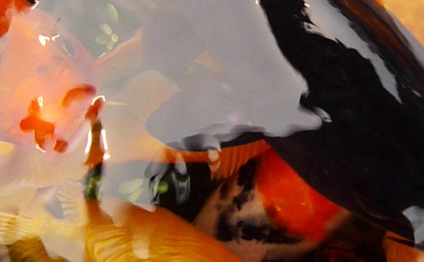 Des poissons rêvaient qu’i/ls étaient une voiture, i/ls répètent et chantent au-delà des visions, là où se loge l’expérimentation à la limite des images. Une transduction matérielle, sonore, au seuil du regard. De cette rencontre s’agencent des mécanismes mimétiques, technologiques, en milieux liquides. Enfermé/es dans l’attente, dans la boucle, i/ls tournent en rond. Il n’est pas facile à un poisson de voir son propre aquarium. Une déterritorialisation du dehors au dedans au dedans du dehors, des désorientations oppositionnelles pour des circulations enchevêtrées ; une respiration, enfin. D’un espace clos, ses débordements. L’aquarium voit pour ne plus rien entendre, assourdissants, les êtres projettent des renversements (à la surface, s’en sortir).