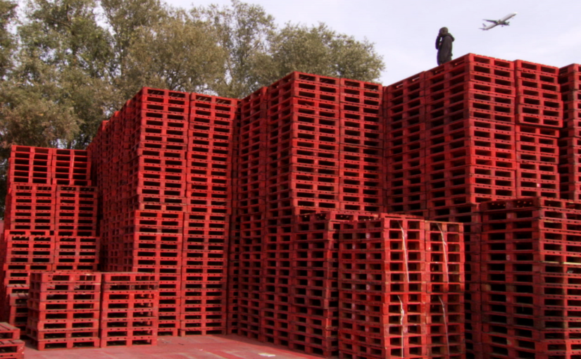Ce climat de tractation offre au film son rythme narratif : Titi, nouveau converti, demande à Mao de qualifier sa circoncision (qu’il s’inflige, seul et au ciseau, dans le premier quart d’heure du film) en accident de travail, ce qui lui est refusé. La solidarité qu’il trouve plus tard auprès des mécanos de l’usine, communauté qui va presser les questions liées aux heures supplémentaires non-payées et se poser en dissidence face à l’instrumentalisation de l’islam menée par le patron, va se solder par un licenciement économique. Cette bande fera sécession, court-circuitant le protectorat fallacieux de ce bâtard de Mao. Contre la mosquée et l’imam désigné par celui-ci, les mécanos vont aménager la leur en plein milieu des palettes – une mosquée toute rouge et sans toit, permettant une envolée magnifique par un travelling vertical partant de la prière des ouvriers vers le ciel. La beauté réside dans la façon qu’a le cinéaste de lier les gestes : c’est le cas d’un plan resserré sur les pieds d’un ouvrier faisant ses ablutions à travers les palettes (mais peut-être se lave-t-il juste les pieds après une journée de travail salissante) – le cinéaste sait tirer des fils depuis la matière vers une mystique, et ainsi transformer les rares motifs symboliques du film en objets concrets. Lorsque les mécanos sont mis à la porte – pour des motifs économiques dans le discours, mais par la façon dont ils échappent au contrôle de Mao dans la logique du film, l’un n’annulant pas l’autre quoi qu’il en soit –, ceux-ci vont se cloîtrer dans l’usine, et reprendre possession de l’appareil productif. Se joue pour le cinéaste une imbrication de la matière et du sens (difficile de croire qu’il y ait dans la fabrication un déterminant premier), les vues sur les transpalettes officiant dans ces immensités rouge-brique sont autant hallucinantes plastiquement que fertiles pour peu que l’on se mette du côté des travailleurs : le patronage des palettes qui ouvre le film – ordonnées comme si elles étaient les murs d’un labyrinthe – s’éteint par une expropriation. C’est l’image de ces même palettes toutes alignées devenues barricades qui clôturent le film, et font front.